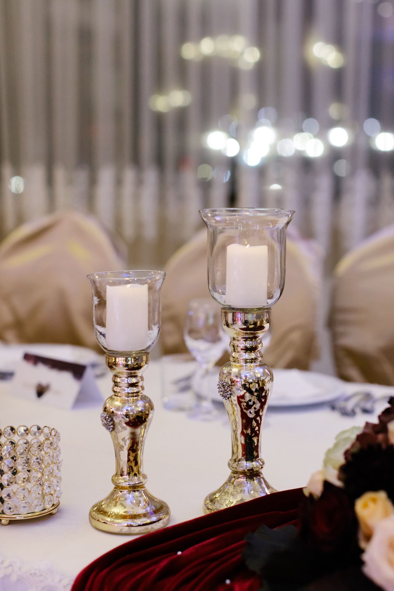 Nunta Mirabelei și a lui Mihai reflectă cel mai bine atmosfera dramatică de toamnă. De la aranjamentele florale cu nuanțe de burgundy și peach până la accentele de auriu, am fost entuziasmați de fiecare aspect și detaliu al acestui eveniment, la care am lucrat cu mare drag.